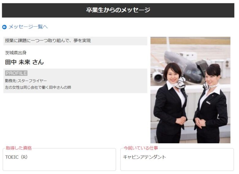 引用:ベスト進学ネット「東京エアトラベル・ホテル専門学校」学校ページ