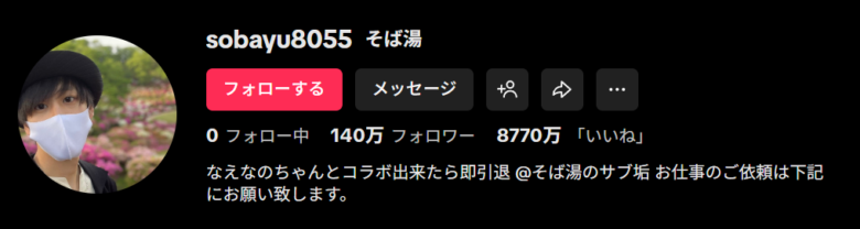ちなみに、そば湯さんのTikTokアカウントを見てみると、インフルエンサーでタレントの「なえなの」さんの文字が。