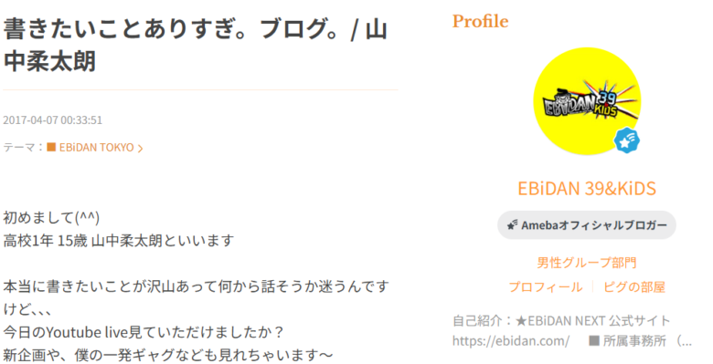 「EBiDAN TOKYO」時代のブログ記事で、高校生であることを自己紹介で発言しています。
